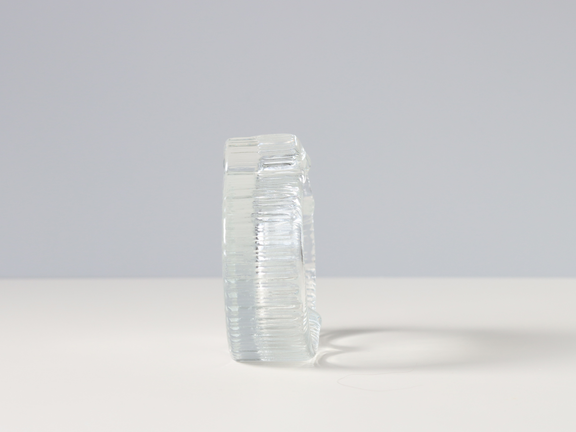 正面から見たときにはガラスに縦に入ったラインがとても美しく、窓辺に飾っておきたくなる作品。