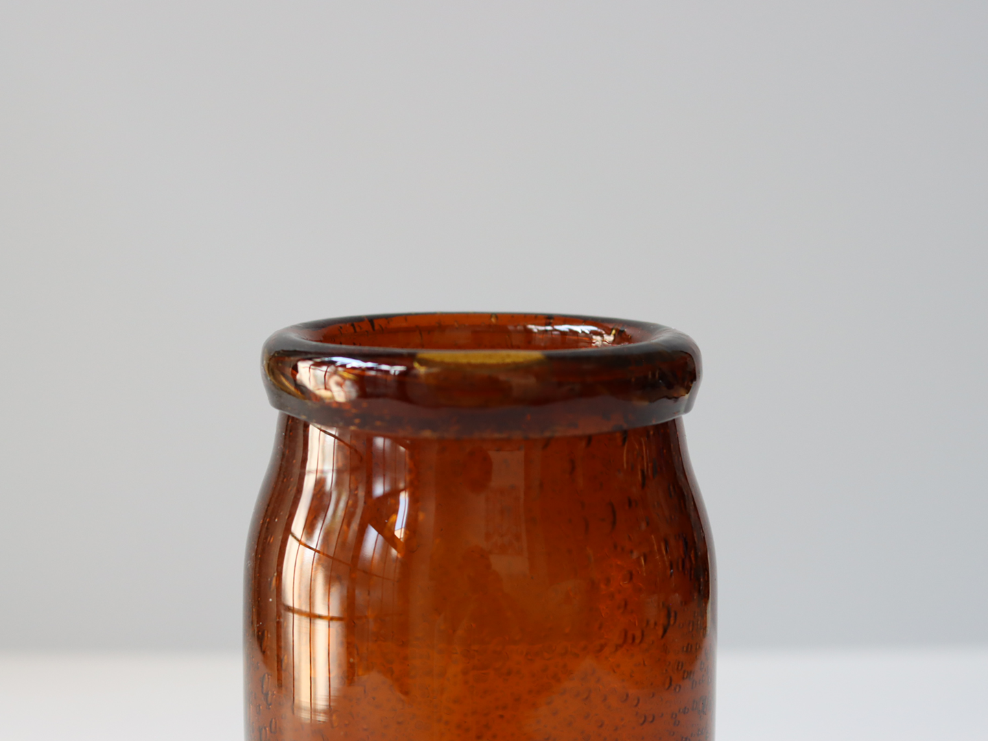こちらは飴色のようなアンバー色のベース。高さは13.5cmほどでベースとしては使いやすいサイズ感。大小の気泡が入っているのが特徴的でErik Höglundらしいアイテムです。