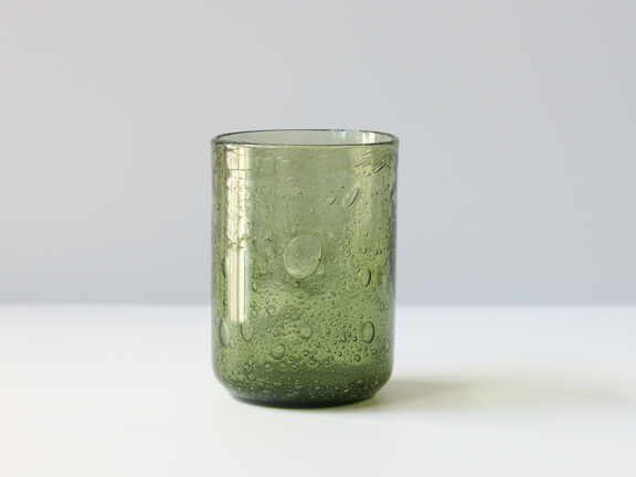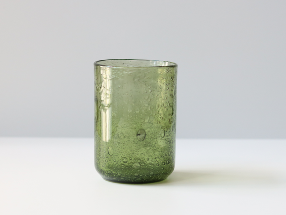 こちらは、グリーンのガラスのベース。光や見る角度によっては鮮やかなライトグリーンに見えたり、深いモスグリーンにも見えます。大小の気泡が入っているのが特徴的でErik Höglundらしいアイテムです。