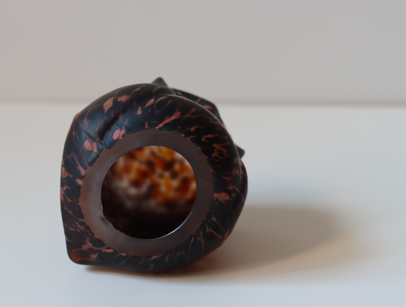 こちらはマットブラックな質感のガラスに、オレンジ色の模様が入っています。目はフロストのガラスが付けられています。