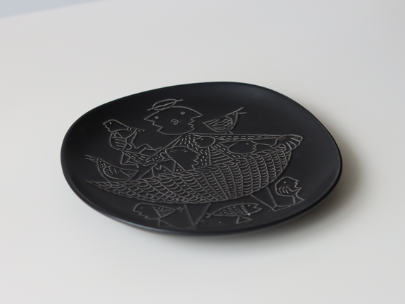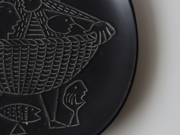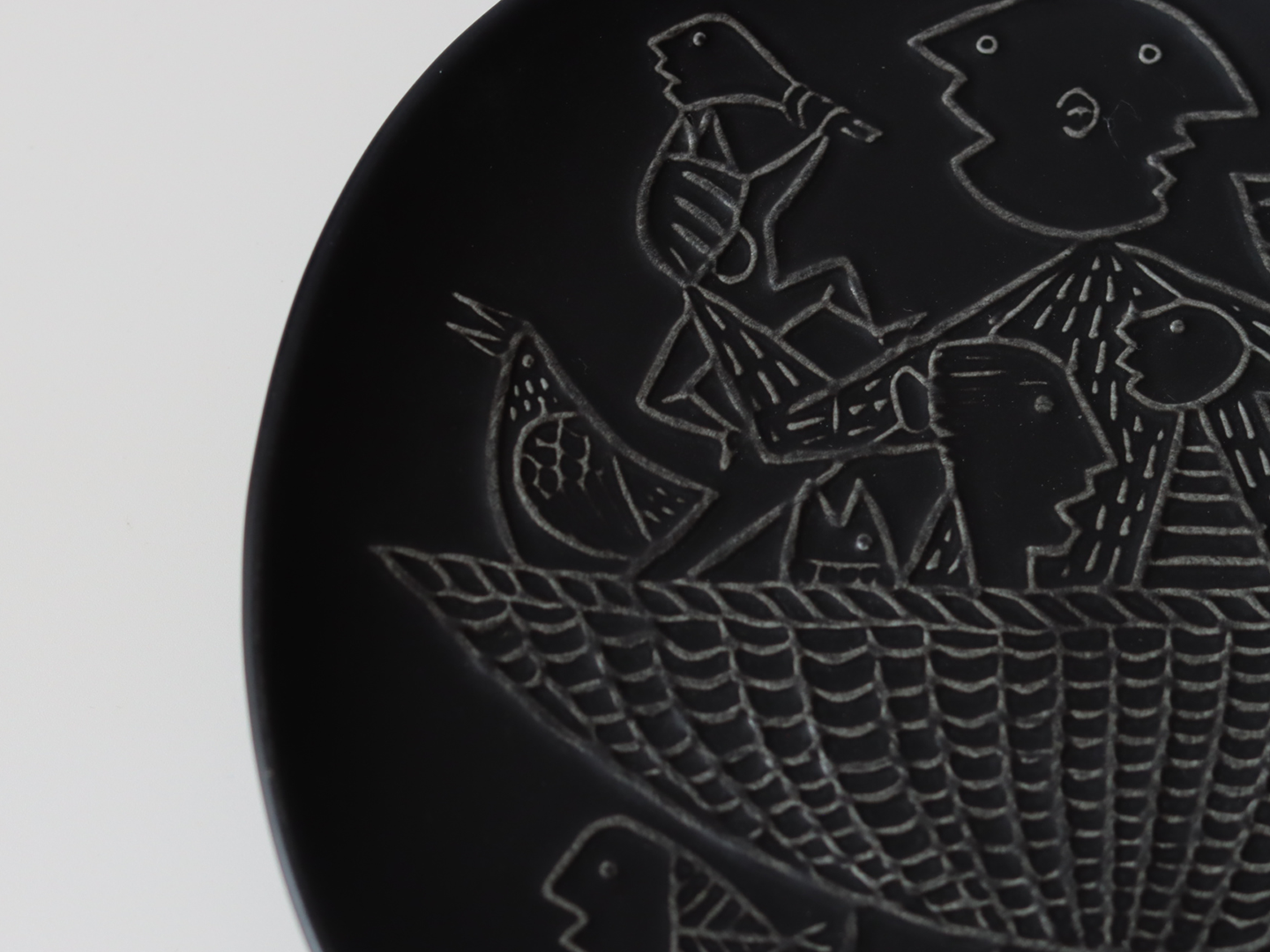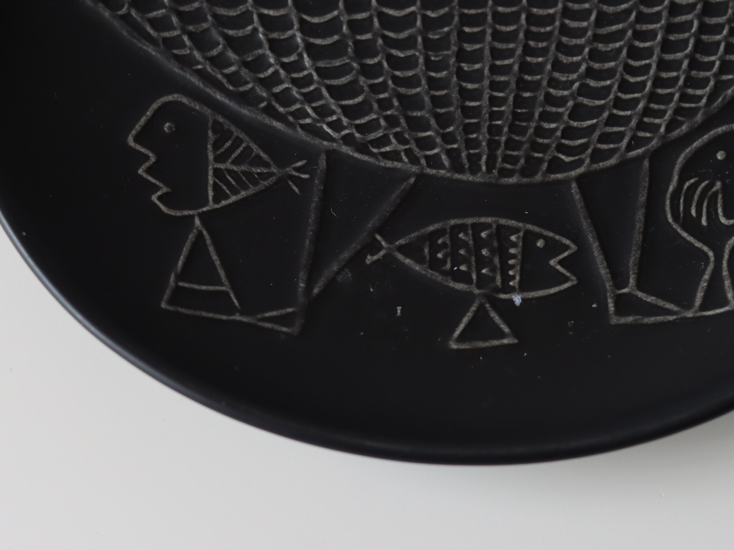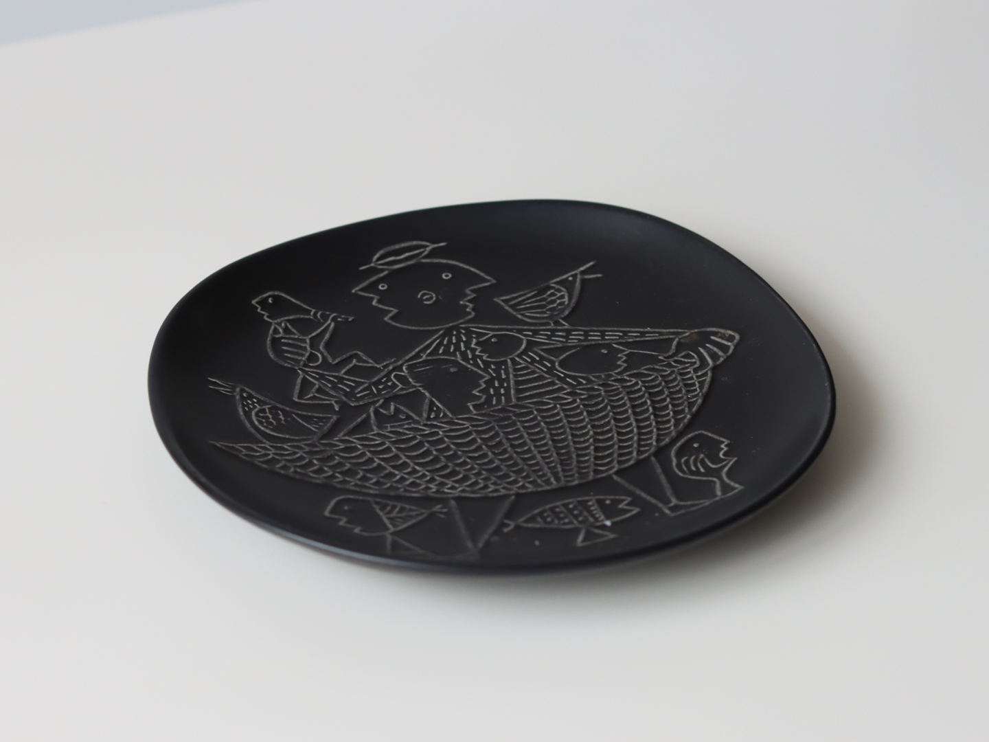 Gustavsberg (グスタフスベリ) Stig Lindberg(スティグ・リンドベリ) Piazza(ピアッツァ) 19.5cm plate black fishing │ 北欧 スウェーデン ヴィンテージ プレート 漁 陶磁器