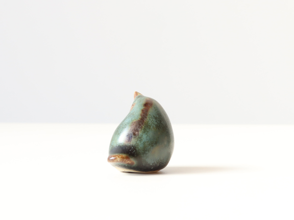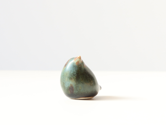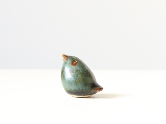 こちらはマットで渋めな青緑系の釉薬がベースに使われている個体。くちばしや目の部分は茶色で表現されていて、単色ではない釉薬はまるで本物の鳥を連想させます。また上向きの姿が愛くるしい表情です。