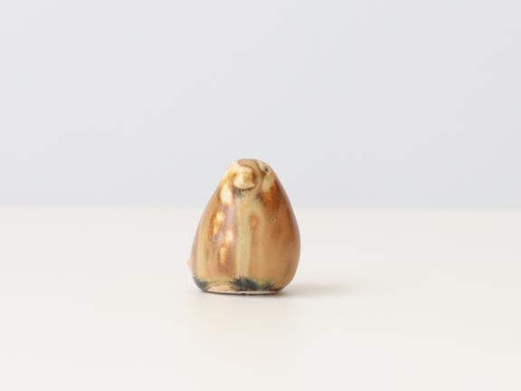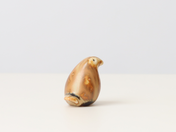 こちらは若干艶のあるカフェオレ色の釉薬がベースに使われている個体。くちばしや目の部分は白っぽく表現されていて、単色ではない釉薬はまるで本物の鳥を連想させます。薄いところと濃いところの濃淡が楽しめます。