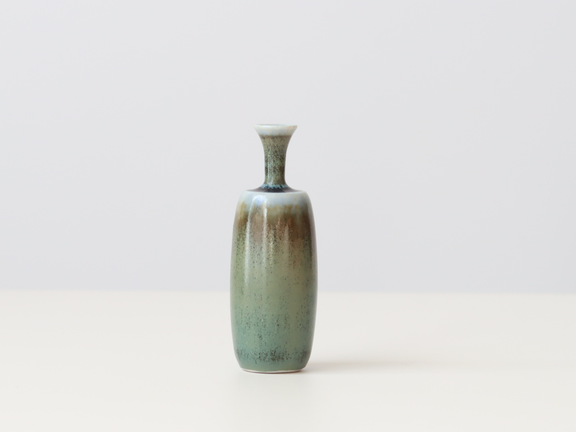 とくに手のひらサイズのミニチュアのベースやボウル、小さな鳥のオブジェなどで知られ、限られたスケールのなかに有機的なフォルムと深みのある釉薬表現を詰め込んだ作品は、20世紀スウェーデン陶芸を代表するもののひとつと評価されています。