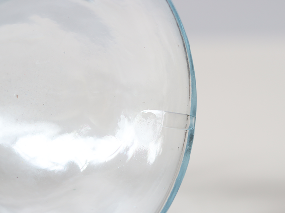 小傷が全体的に見られます。底付近に大きな気泡が見られます。