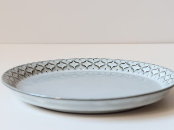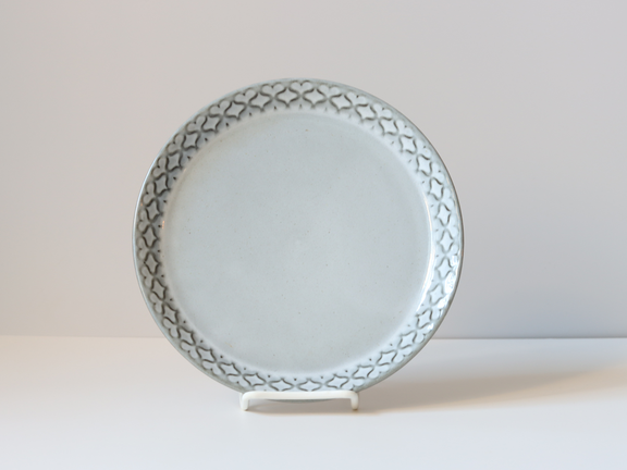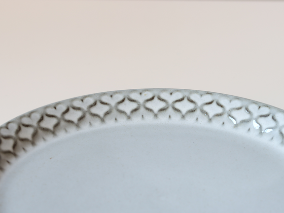 青みがかったグレーの釉薬に、ぐるりと並んだハート模様が印象的なCordial。可愛らしい印象のコーディアルですが、落ち着いたグレーの釉薬が使われているため、思ったよりも大人っぽい雰囲気で合わせやすいシリーズです。