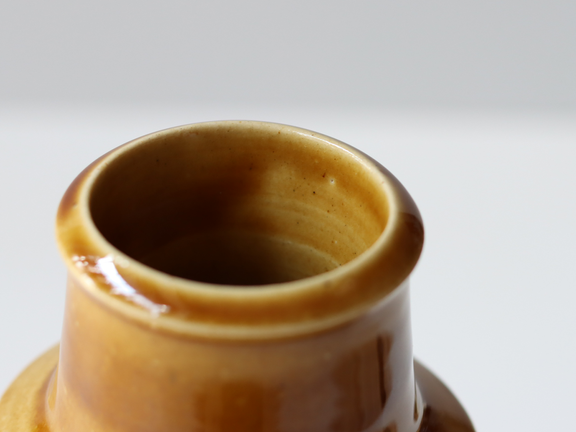 こちらは艶のあるブラウンの釉薬が美しいベース。釉薬の色や濃淡により同じものでも若干色味が異なります。こちらはライトブラウンに近い明るい色となっています。