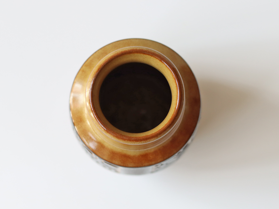 こちらは艶のあるブラウンの釉薬が美しいベース。模様の部分はマットな黒っぽい釉薬が掛けられていて、艶のある部分とのコントラストが美しいです。