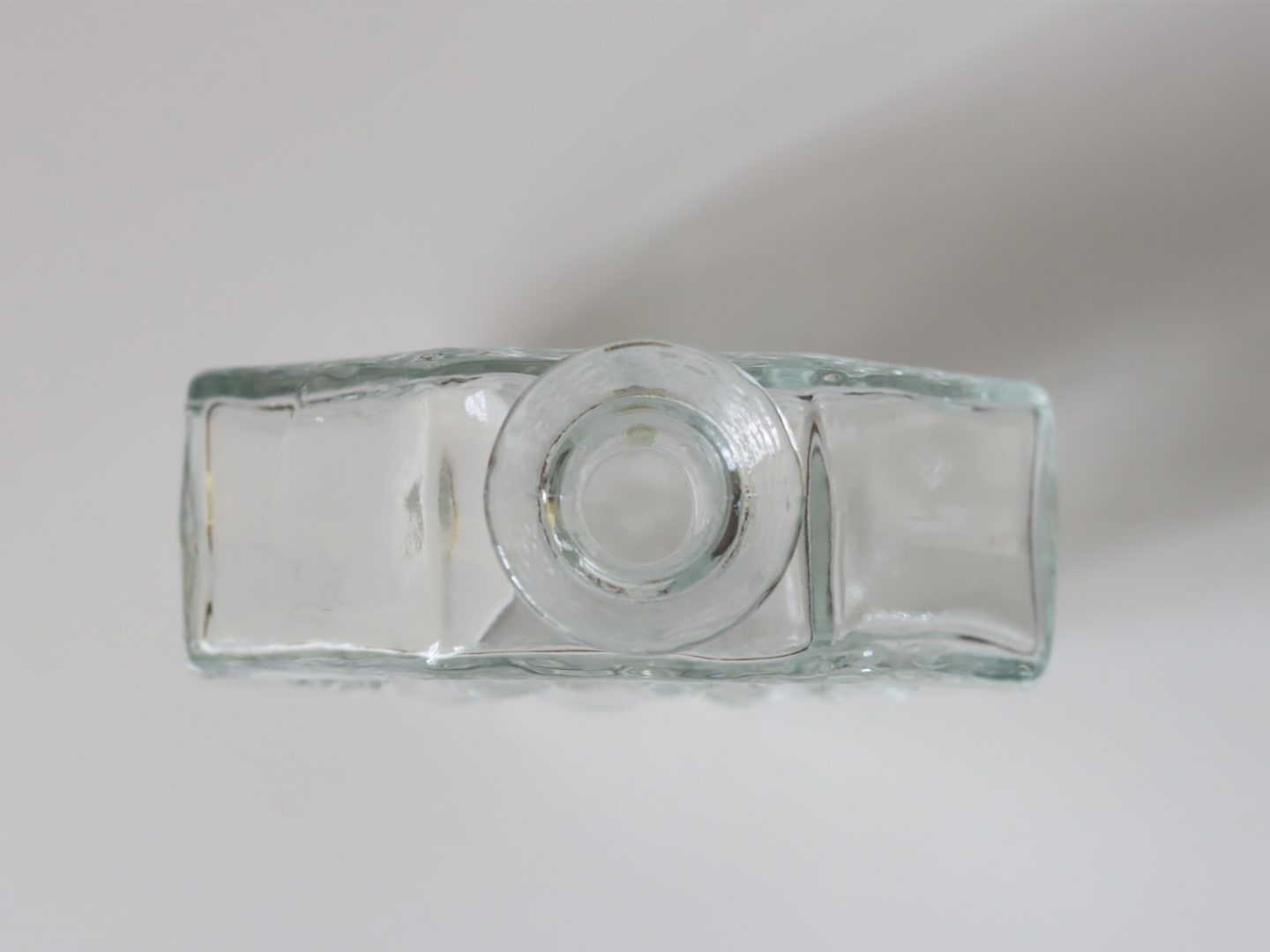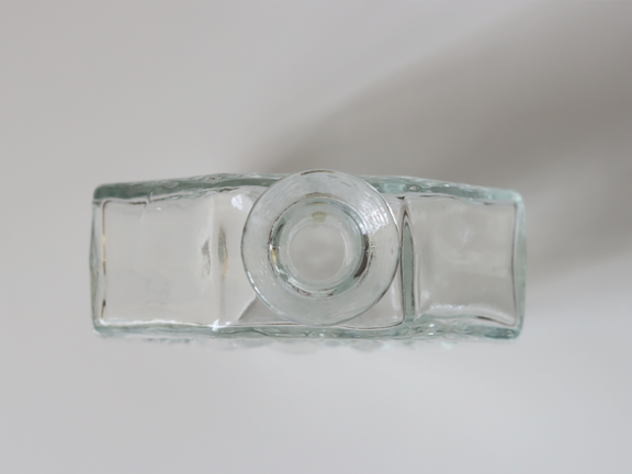 傷では無い製造時にできたと思われるガラスのヨレがあります。ブランドシールは残っていますが、経年により剥がれている部分があります。外側に多少の小傷は見られますが、全体的に綺麗なコンディションです。内部は口元が細いため洗浄できていません。内部も目立つ汚れなどは見られず、良好なコンディションです。