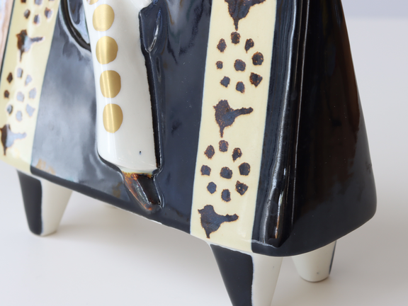 馬は黒の釉薬をベースにたてがみや尻尾はブラウンで塗られています。顔や尻尾付近はベージュで塗り分けられ、鳥にも見えるような模様が描かれているのも可愛らしいポイントです。