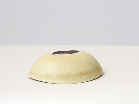イエローベージュの釉薬が特徴的で、口元から底にかけて流れるように釉薬が掛けられています。単色では無い複雑な表情をしているところも彼らしいデザインのように思います。