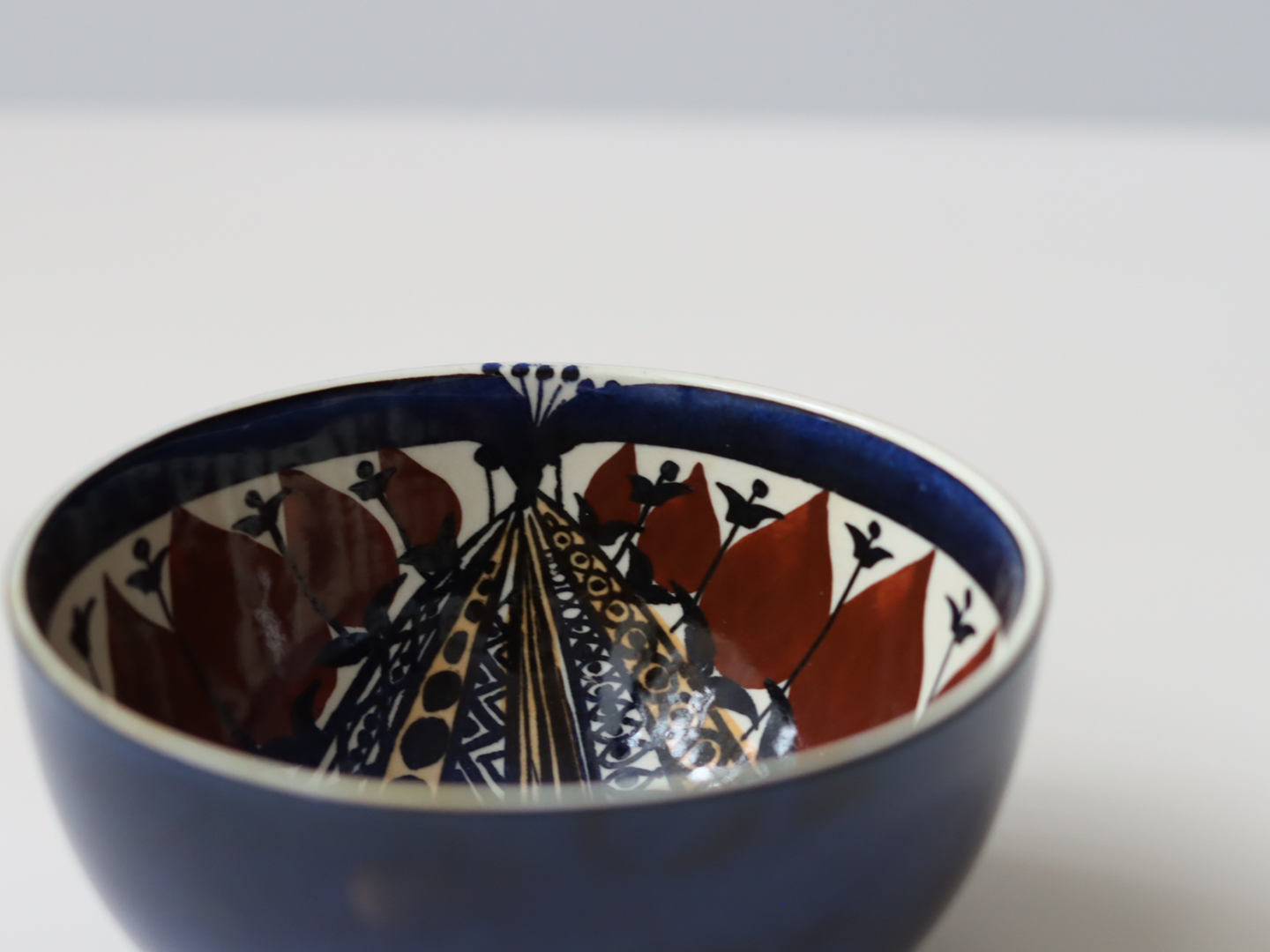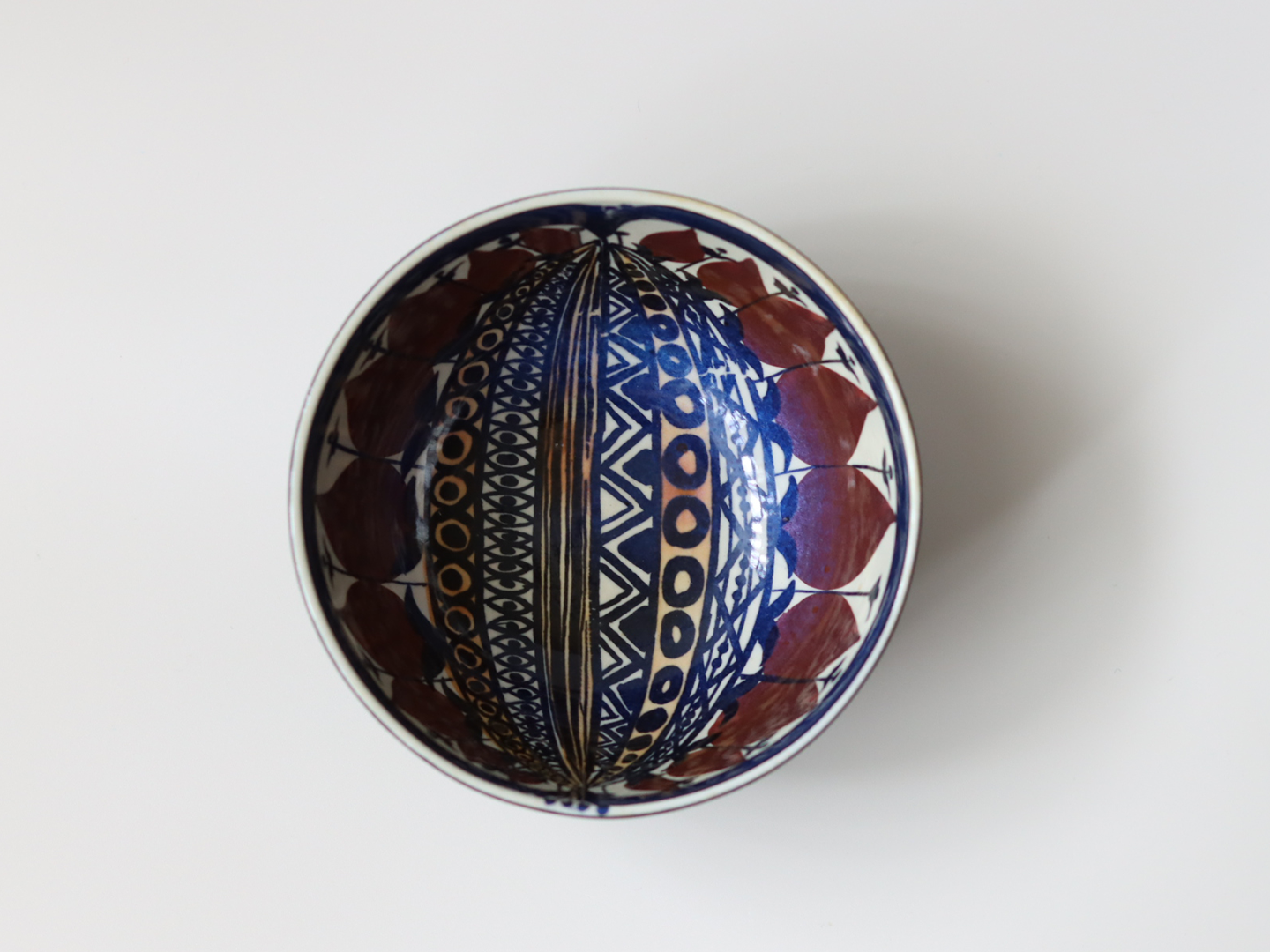 お椀ほどの小さなボウルで、内側前面に果実の断面図のような模様がいっぱいに描かれています。