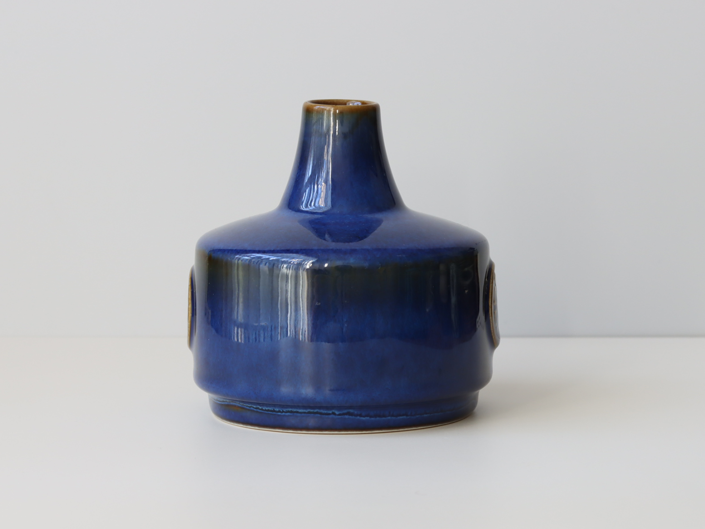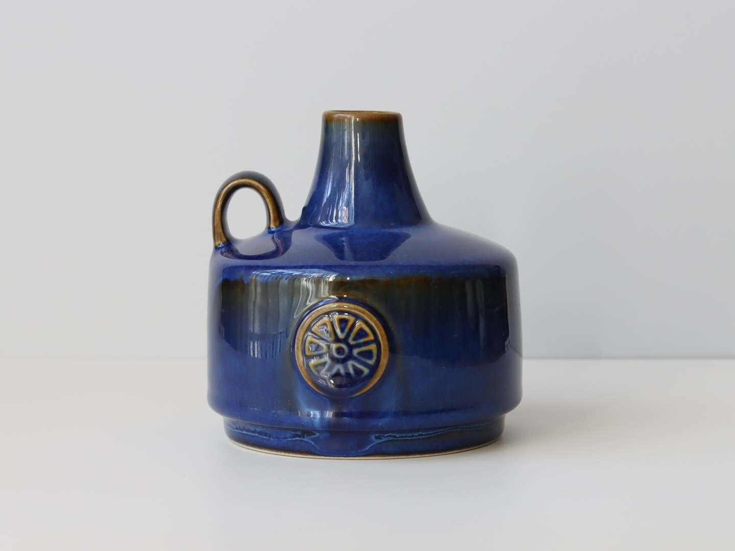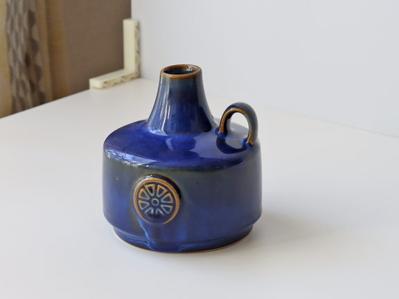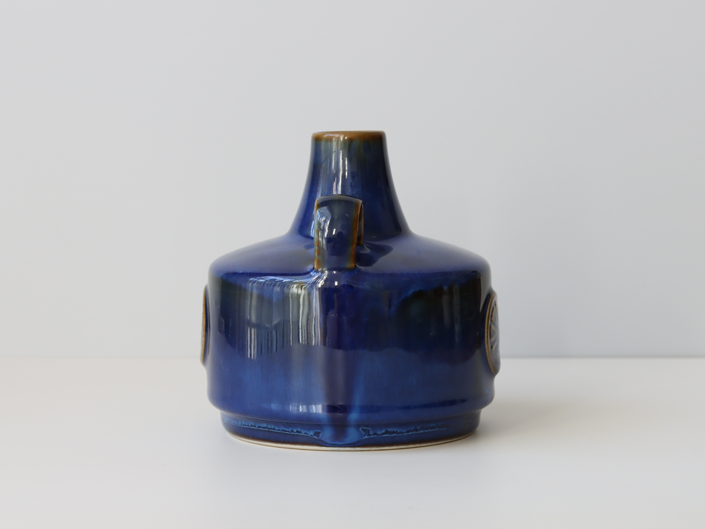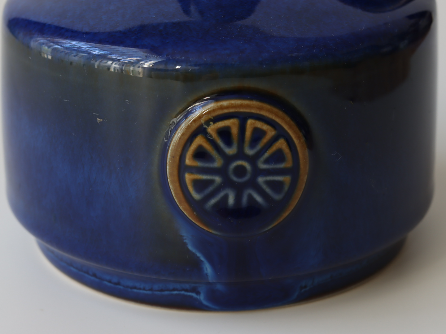 この艶やかなブルーの釉薬と、車輪のようなモチーフの型押し装飾が印象的で、Soholmもアイテムの中でも、高い人気があります。
